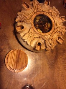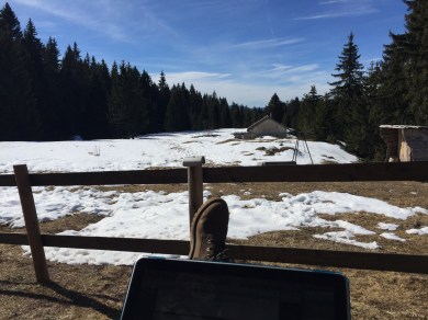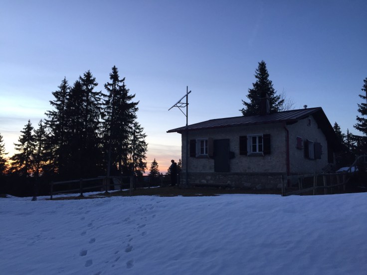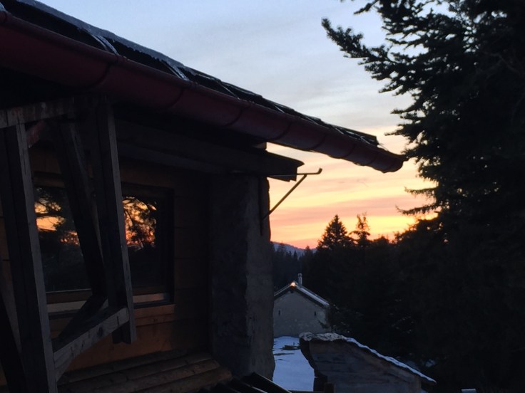 Today I spent the day hiking (snowshoes in hand, the sun scared away the powder we’d prepared to face) and cabin-resting with 40/50 year old Swiss folk, friends of my host mama. Spending a 9 hour evening of aperitif, raclette (my childhood dream of a meal. This is a brûléed cheese wheel scraped onto a plate of your selection of potatoes, pickles, paprika, etc.), dessert, and card games was a Swiss experience to say the least. We shared huge laughs over jokes and situations that I independently wouldn’t have even found that funny, but the group joy was infectious and a beautiful thing. My cheeks are sore for smiling! We closed the eating and switched to drinking, beginning with a question posing game where you ask questions off of cards (all written in french) and guess what the askee’s answer will be (oui, non, or ce dépend). Moving on we played a Swiss drinking game, counting off numbers around the circle, saying “buzza” whenever we reached a multiple of, or a number that included, 7 (i.e. 7, 14, 17, 21, 27, 28). Anytime we messed up we passed the grolle (see photos below for Saturday) of spiked orange coffee and took a drink. We did the whole thing in french, which was awesome practice for fast french numbers. But I had trouble with dix-sept, getting caught by number 17 three times. Our final game was the Suisse equivalent of catch phrase, this one titled “Times Up!” Although a challenging night at times, the group speaking almost entirely in french and being of a very different age demographic, I felt well integrated and happy with a lazy weekend in the woods.