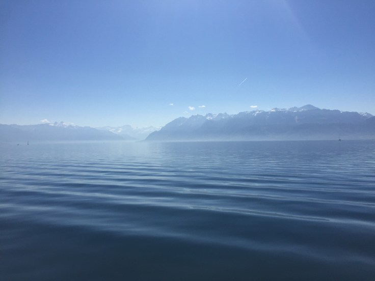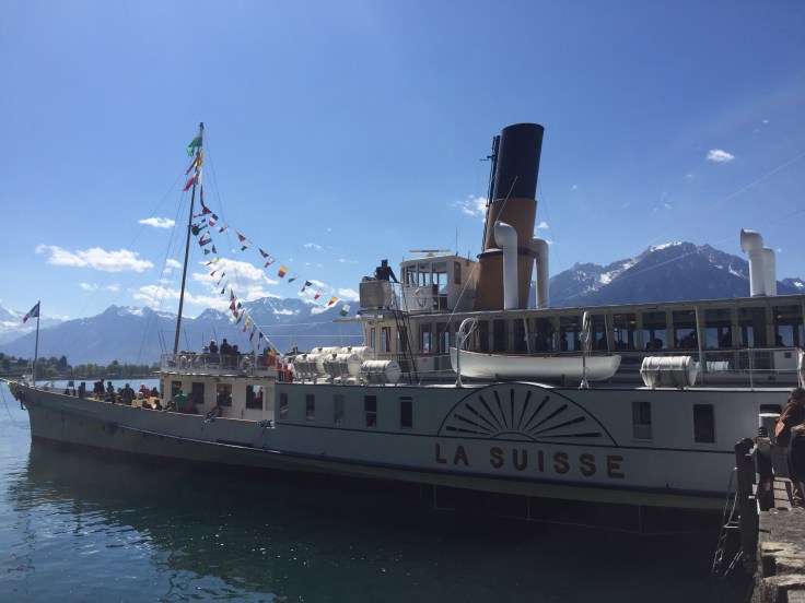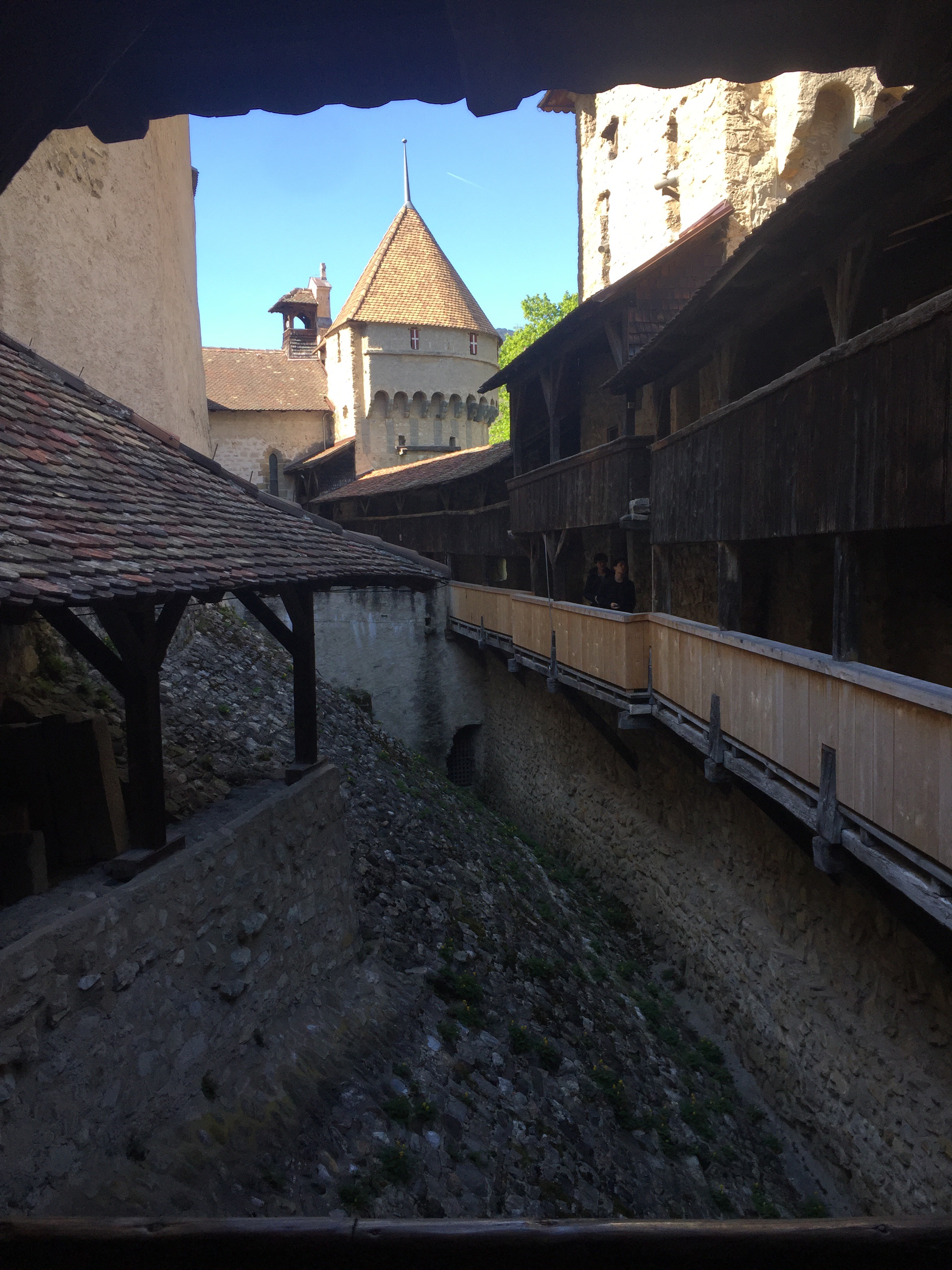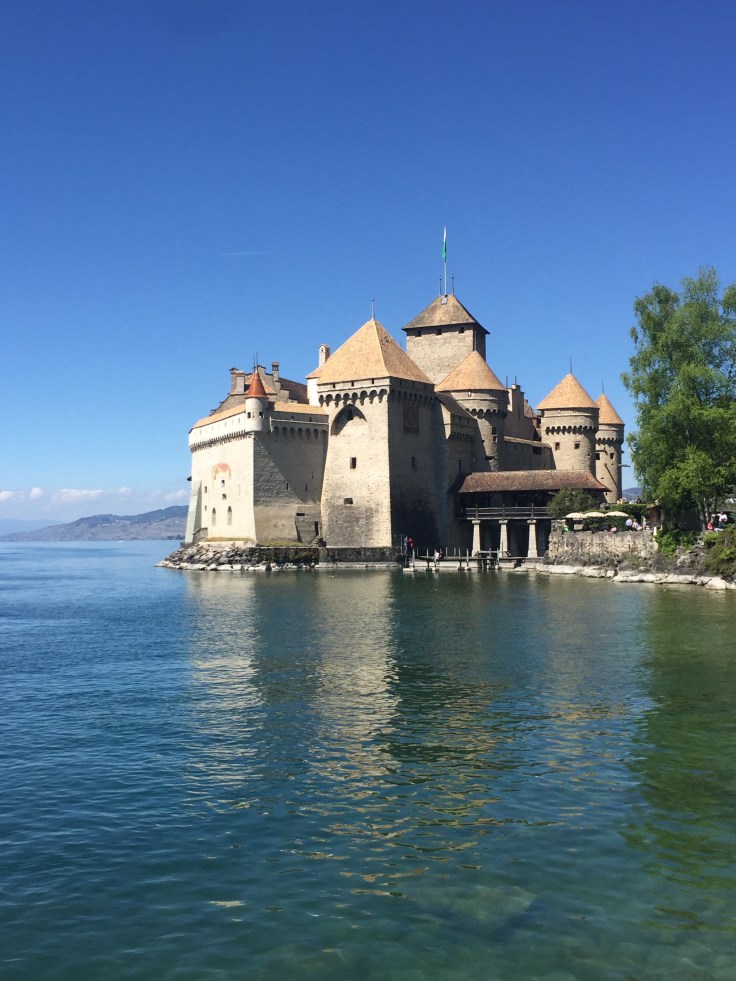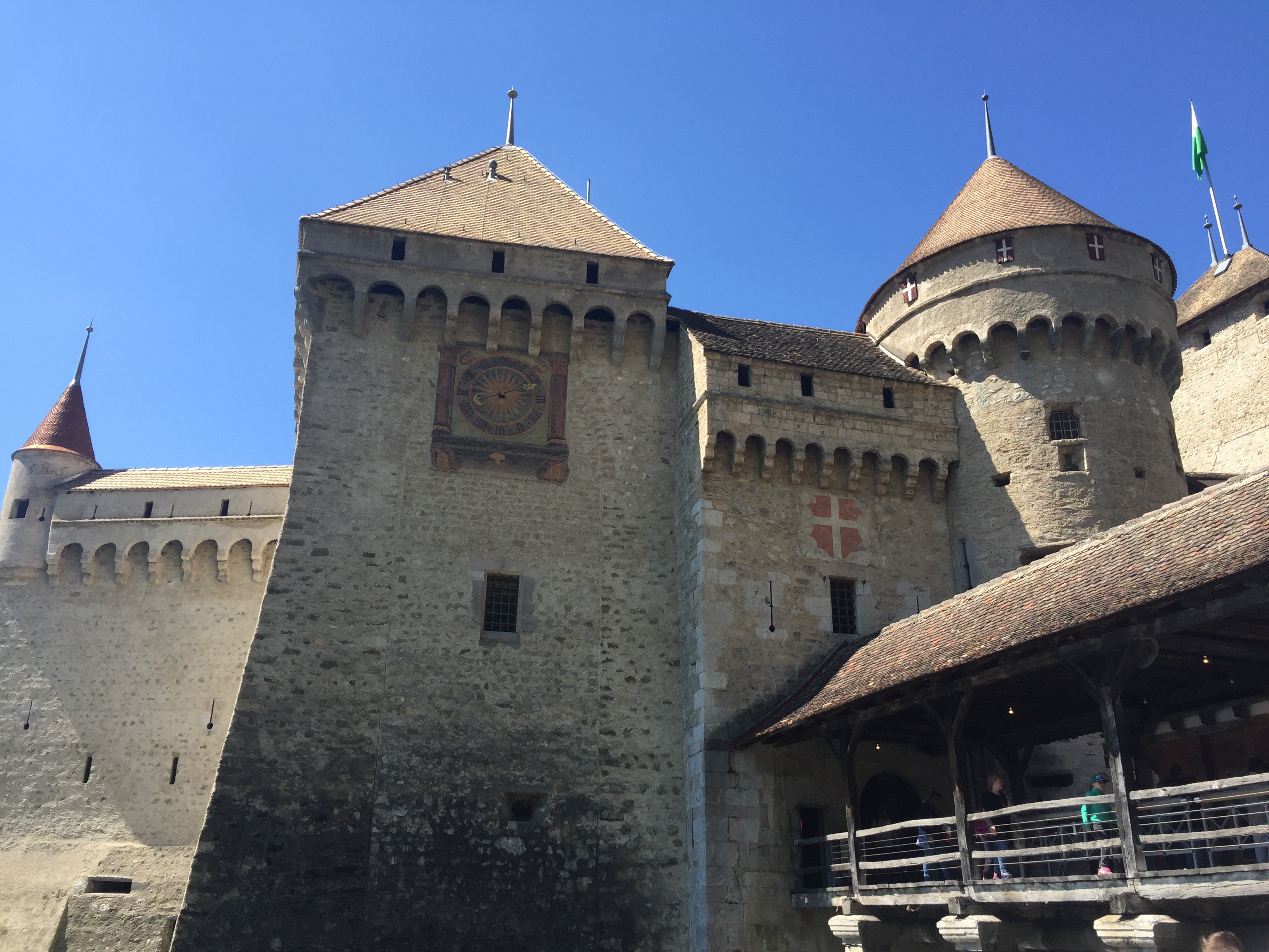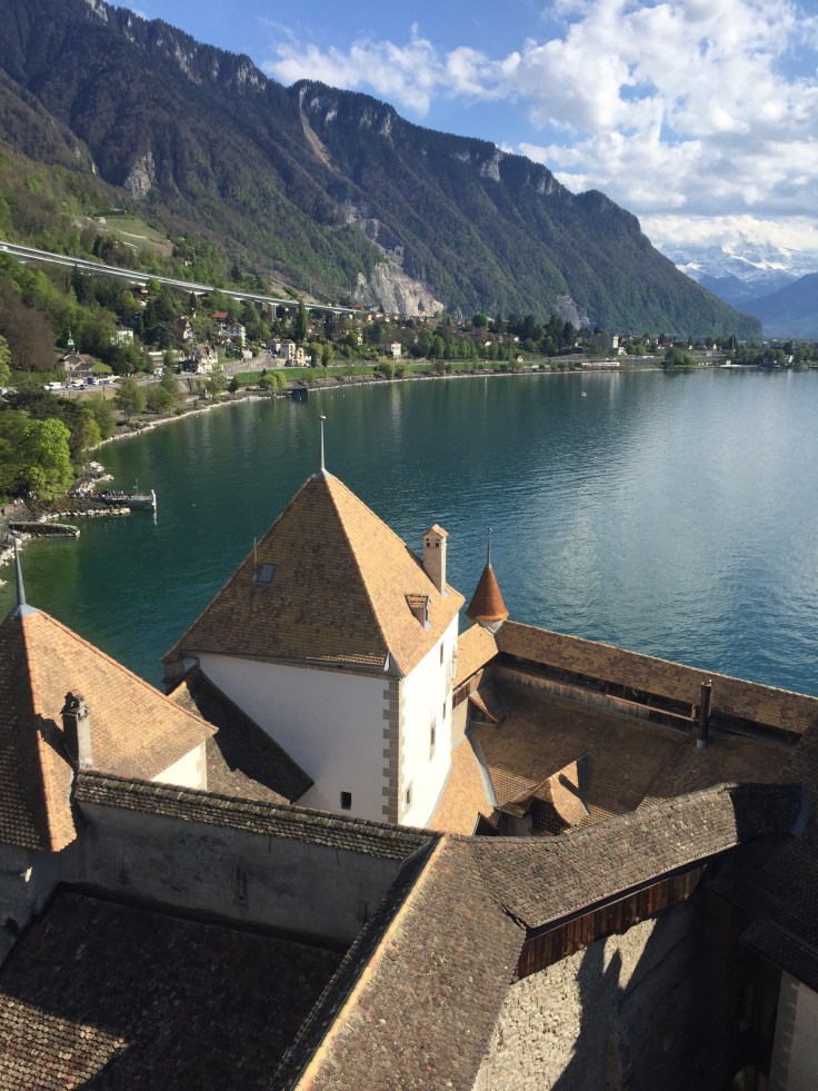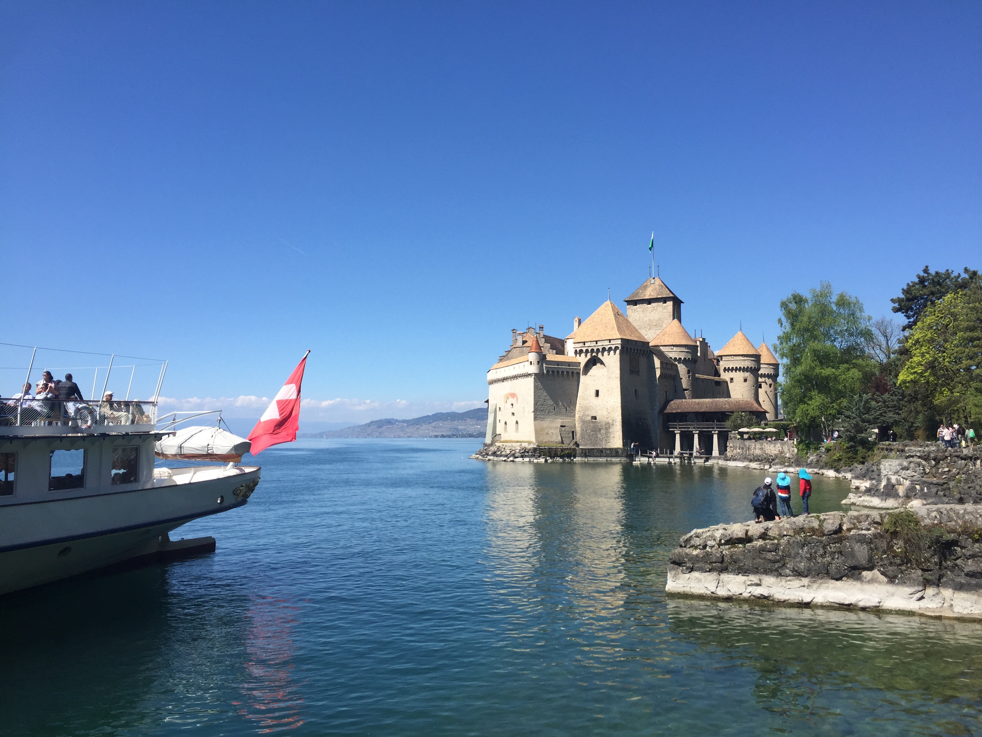 Took a boat to Château de Chillon with my host family and explored the castle. Stopped by the waterfront in Lausanne and looked at the easter-egg mural being assembling, each egg a donation towards families of children with cancer. Drove home and had rotisserie chicken for dinner and watched the voice as a family at the table.