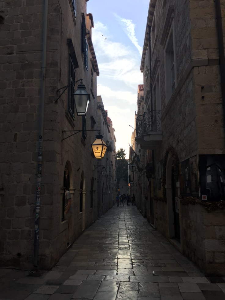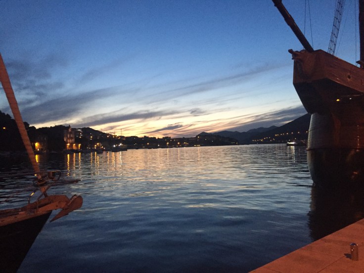 - 11pm dinner of stuffed pasta with veal and basil green sauce and delicious Croatian red wine in the old city walls (Both the old towns of Dubrovnik and Zadar are enclosed in huge stone walls)