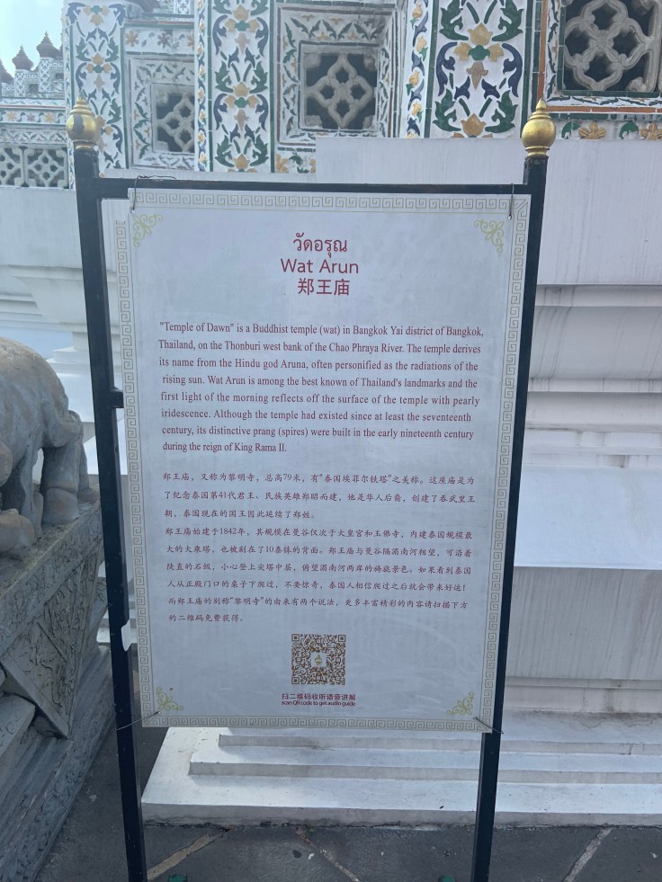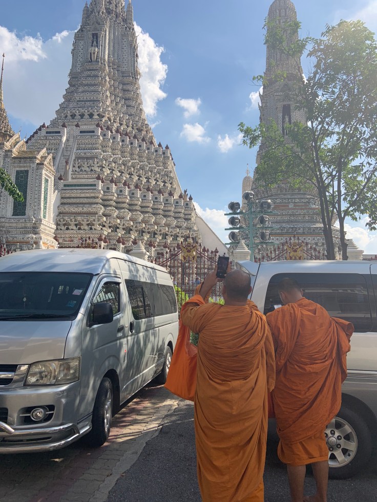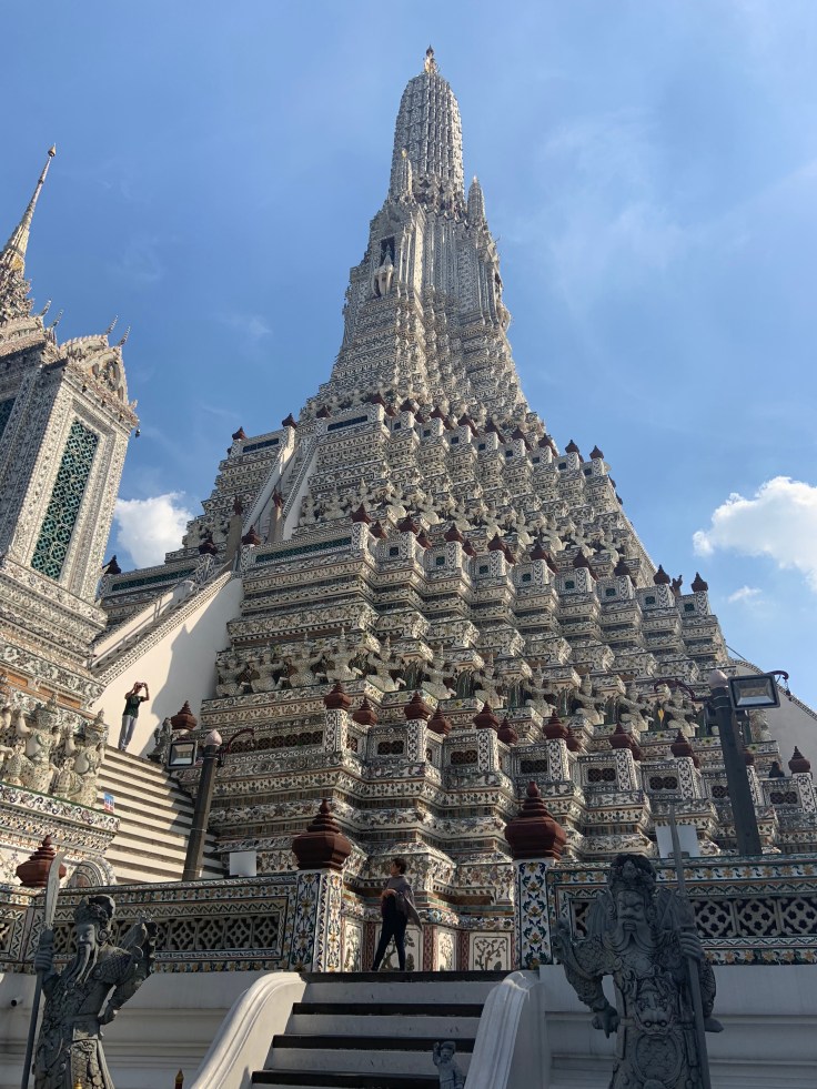 - Visited Wat Arun. I almost didn’t stop here after feeling overwhelmed in Chinatown, but I’m so glad I did! As I walked up the tall steps to take a lap around the temple space my gaze was drawn up to the hundreds of wind chimes that suddenly started singing. It felt like the universe was talking to me in that moment telling me to check myself, to breathe and take it easy. I keep getting caught up in little things and I’ll let anxiety take over for a moment, when really, I’m lucky to be alive, to get to be here, and I need to enjoy each moment. When I finished the loop I walked back down stairs to the front and read the history of the structure and found it connects to the sun. In Farsi my name, Mitra, means Sun Goddess, so I’ve always resonated with sun symbols. Immediately the temple has an extra special meaning to me.