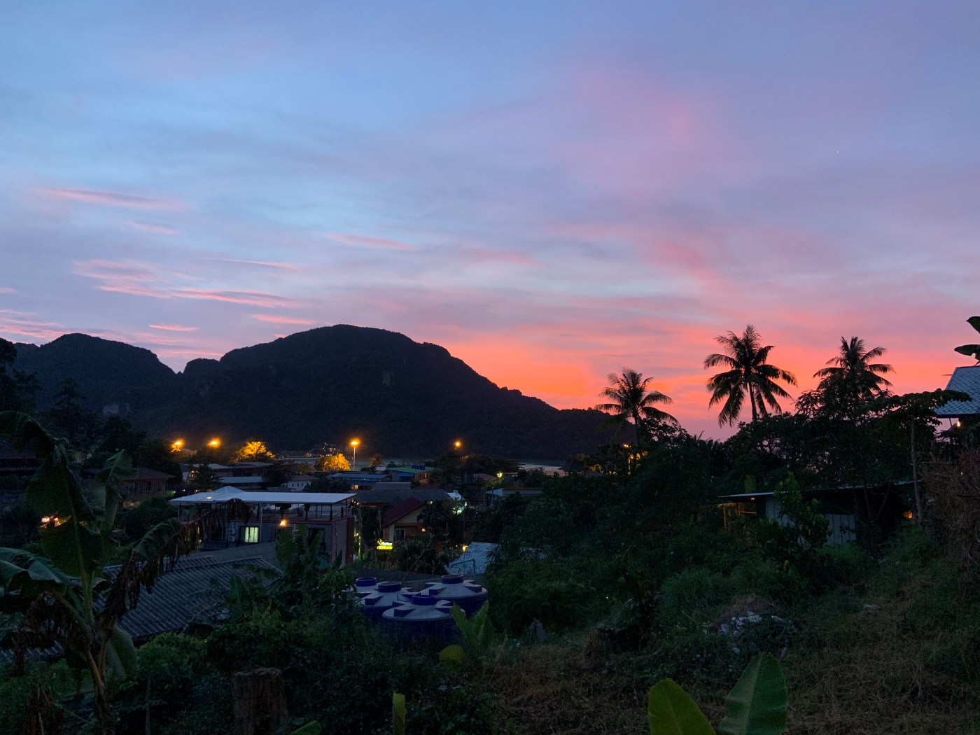 - Took some road that had a sign for “Viewpoint 3” and walked and walked through the jungle listening to all sorts of bird noises, and one slightly concerning big cat noise, until I found myself at the most epic viewpoint (Viewpoint 2). There were platforms of rocks to sit on, so I guess you could add a nice boulder to my list of chill seats. Satisfied with this view, I made my way back to town instead of continuing on to viewpoint 3. On the walk down I found Viewpoint 1 and caught the most stunning sunset! My timing could not have been more perfect.