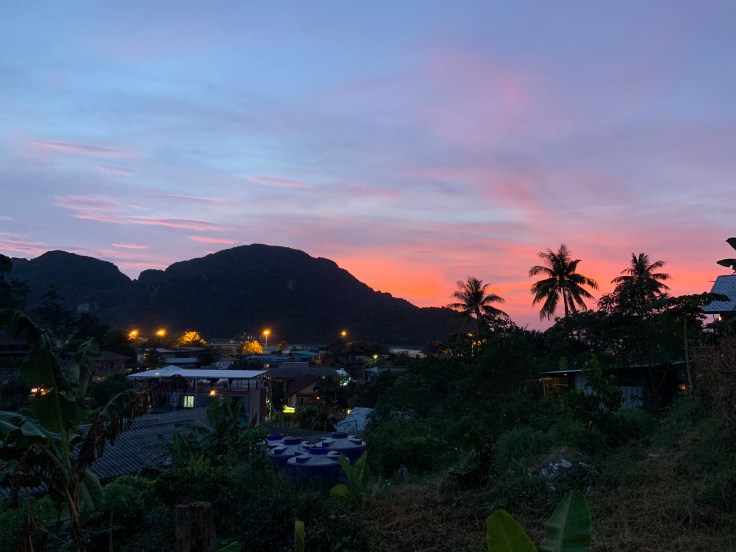 - Spent the evening at Banana Bar again (saw the end of Crazy Rich Asians and then they started playing old-school hip hop music videos which exactly the vibe I was looking for). Saw some Thai kickboxing at reggae bar, danced on the beach at stones for a bit, stopped by the live music bar, then walked home. On the way back some people were chilling and playing hotel California on the guitar. I almost stopped to sing with them but didn’t want to intrude and didn’t know all the lyrics. Almost got locked out of the room when I got back, my key wasn’t working. Made it in and went right to sleep.