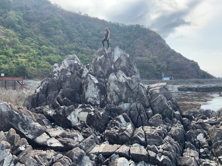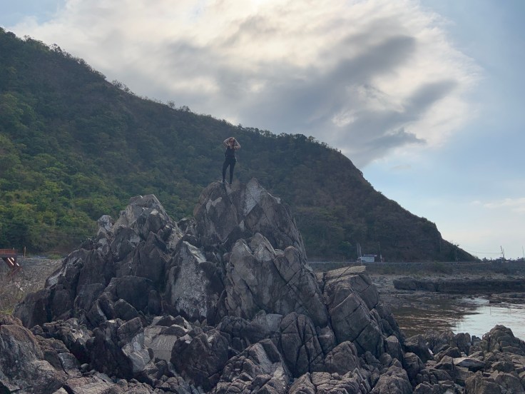 Pagudpud – got lucky and a small restaurant with 1 open-air cottage let us set up our tent for cheap. Everything else was pretty pricey. We moved some rock slabs to make the ground flatter and chilled out camping by the beach. The moon and clouds and ocean were magnetic. Saw a significant eroded rock on the way to Pagudpud.