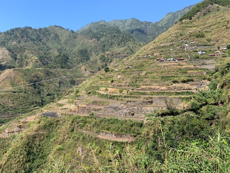 We left Pagudpud with the intention of driving all the way to Buscalan before night. But it was a long all day drive, like 10 hours, and we made stops that put us back on time and we ended up driving into the mountains as the sun was going down. With another 1 or 2 hours of mountain roads ahead, we stopped for gas and advice. This just so happened to be the last town for a long while. We drove through town, Lubuagan, talked to one guesthouse that was full, and started to continue on when we got the urge that we should stay. So we turned back and talked to another guesthouse, JBL, which happened to be the last guesthouse open that night and they had just 1 room available. We were so lucky that everything lined up for us, and before it got too late. Seeing the roads in the morning, it would’ve been a risky ride if we’d continued at night. We ate and chilled a the guesthouse, that was actually the night Ryan found out his lola passed away (you can read more about that here). And in the morning we had coffee from the region and sat on the balcony where there was a view of the mountains and rice terraces. After breakfast, and feeding leftover dried, salted, fish to the dogs, we got on the bike and drove until Buscalan.
