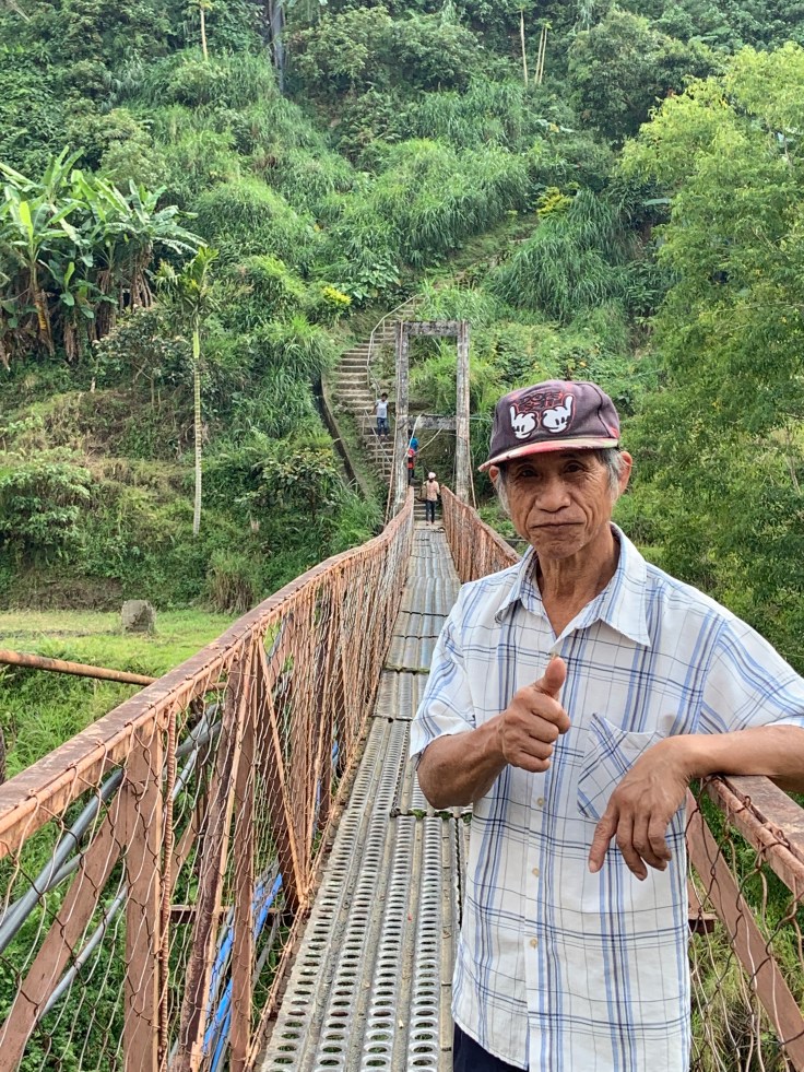 We chose to pass through Buscalan so that we could hike to Apo Whang Od’s village, see the legendary tattoo artist, and receive traditional tattoos. When we arrived we were told we needed to hire a guide to take us on the hike to see her (it’s part of the tourist fees that are now built in to cultural experiences that have become exceedingly popular…maybe I’ll write more about that another time). So we talked to another group of Filipinos with bikes and they let us chip in and join their group. We hiked about 40 minutes, and by hiked this was a clear dirt path, heel to heel with people, but it was steep and the dust was slippery so it was a bit of a trek. We didn’t plan ahead so there was no food or water, but we bumped my music and smiled with the people passing by, bonding over Rebelution and mutual excitement. Some Filinos stopped and showed us their new tattoos. This added energy and motivation to the trek, and quickly, we reached the village at the top.