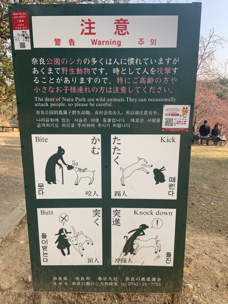 Nara was a simple and extremely amusing stop. As I mentioned in my Kyoto post, I took the train with two new friends from my hostel. Matcha ice cream for breakfast wasn’t enough for our bellies so finding food was the first priority. We spent a couple of hours trying new 7-11 beer flavors with our 7-11 lunches and fed deer in the park. Many of the deer have learned to bow before taking food.